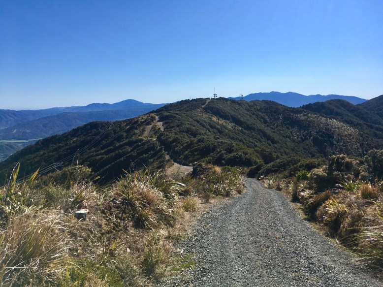 The first 4.5km section is a steady climb with very little in the way of “rests”; pace yourself accordingly. The track then flattens off briefly where you’ll find a false summit with a trig. Carry on along the road, which descends briefly before another short climb to the Mt Climie summit.